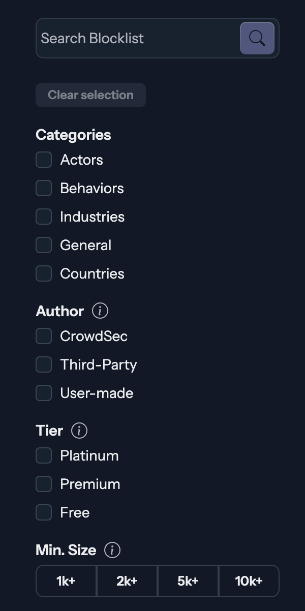 Using these filters helps you quickly locate blocklists that match your organization’s specific requirements.
