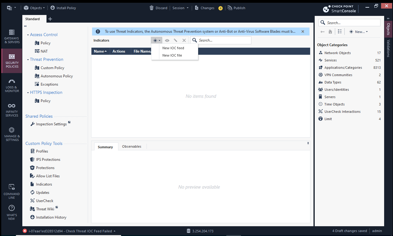 In the properties menu, select Threat Prevention (Custom), then activate at least Anti-Bot or Anti-Virus.