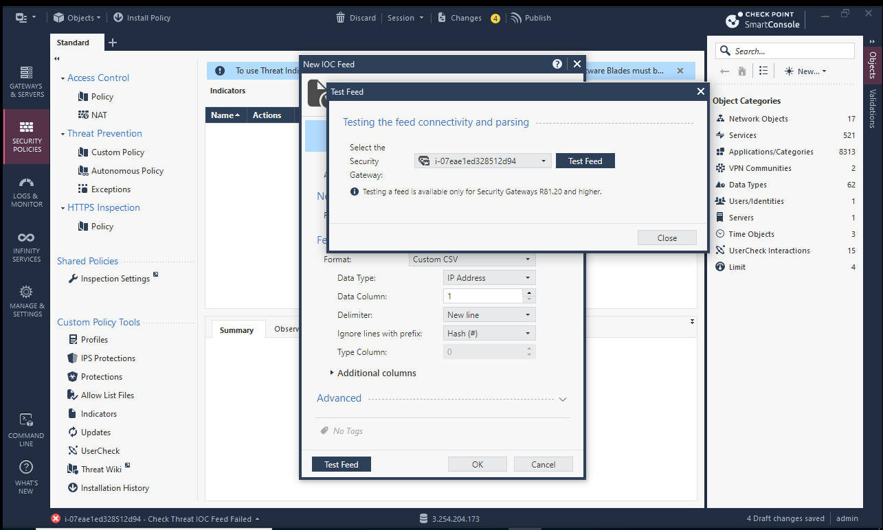 Check Point calls this feature Custom Intelligence (IoC) Feeds, which provide the ability to add custom cyber intelligence feeds into the Threat Prevention engine.
